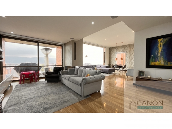 Espectacular Apartamento con vista privilegiada, iluminado y acogedor, cuenta con amplia zona social con chimenea, terraza con vista exterior, comedor, cocina tipo americano con comedor auxiliar, lavandería con habitación y baño de servicio, baño social, estudio, habitación principal con balcón y walk in clóset, baño con tina, 2 habitaciones con baño, family room. Depósito y 3 parqueaderos.
